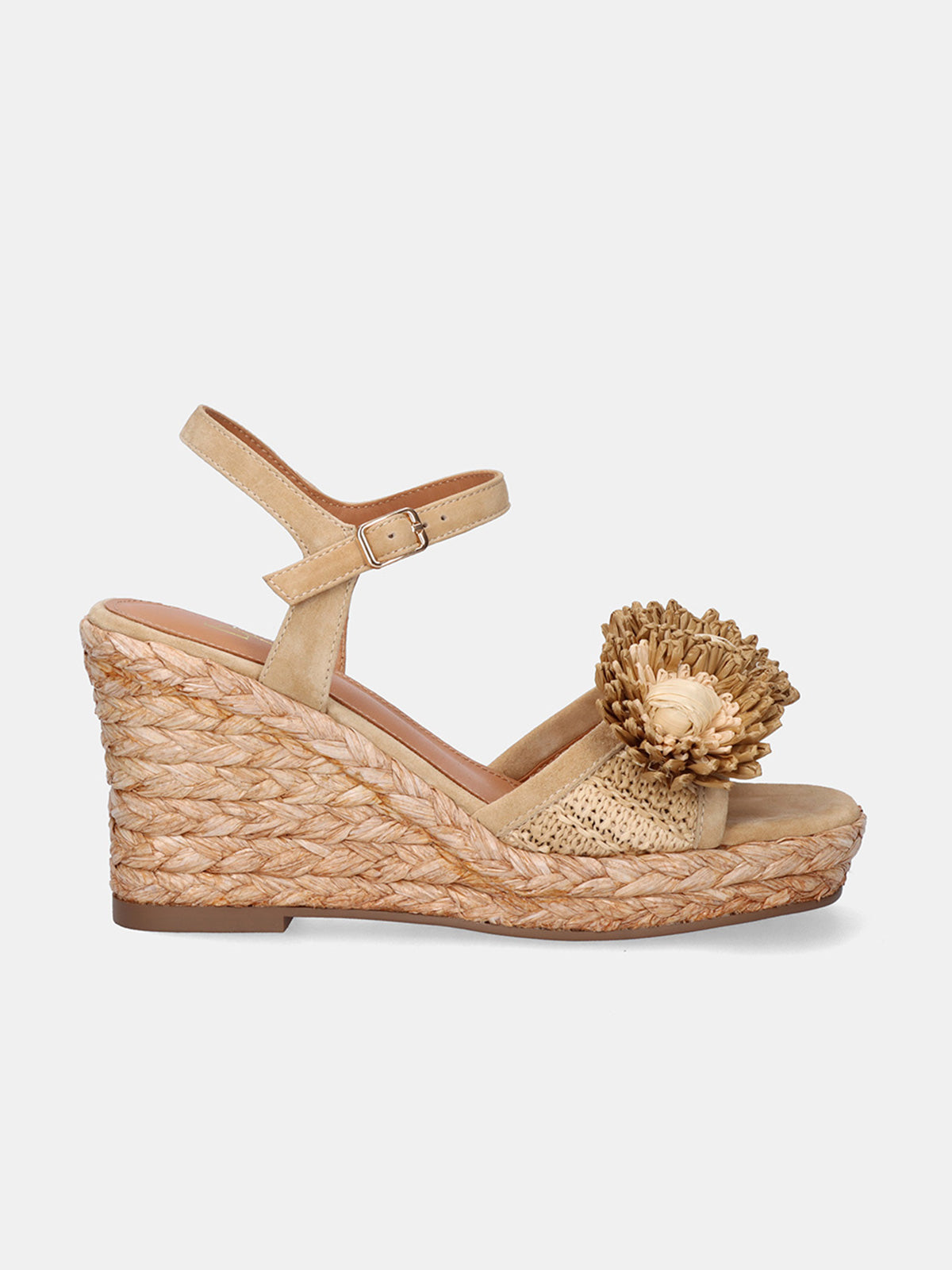 Nuestras cuñas de plataforma Elsa, presentan un diseño moderno con un exclusivo adorno floral de rafia con el que irradiarás un estilo elegante y desenvuelto. Este modelo tan versátil es el ideal para dejar tu huella en el mundo de moda.